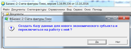 Открыть в программе «Баланс-2:Счета-фактуры Плюс» меню «Файл» -> «Создать»