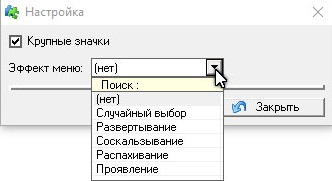 Настройщик отображения панели. Позволяет выбрать отображаемые значки, их размер